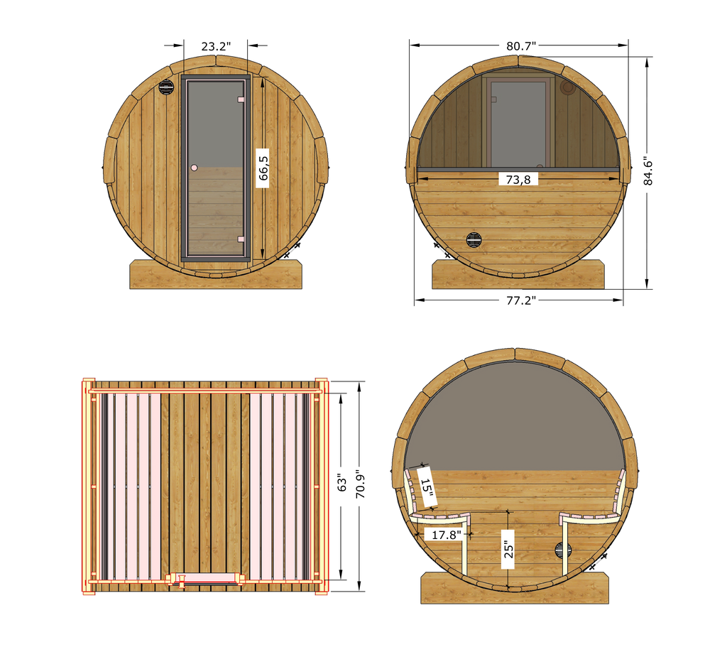 Made in Nordic Europe, the highest quality! The SaunaLife thermo-spruce sauna barrels were designed and engineered by sauna enthusiasts to be the most comfortable and durable backyard barrel saunas you can buy.
